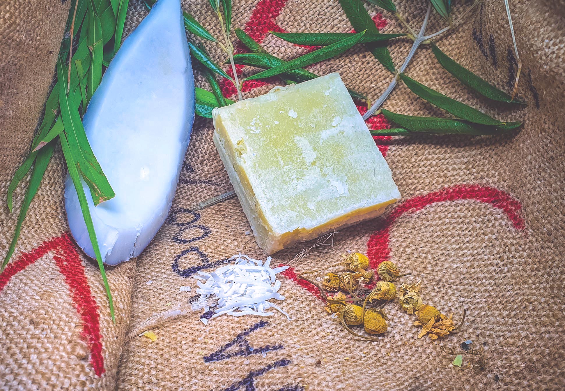 A shampoo & conditioner bar 2in1, 100% plant-based and preservative-free bar, made to you from olive oil, coconut oil, a mix of herbs and essential oils including chamomile.