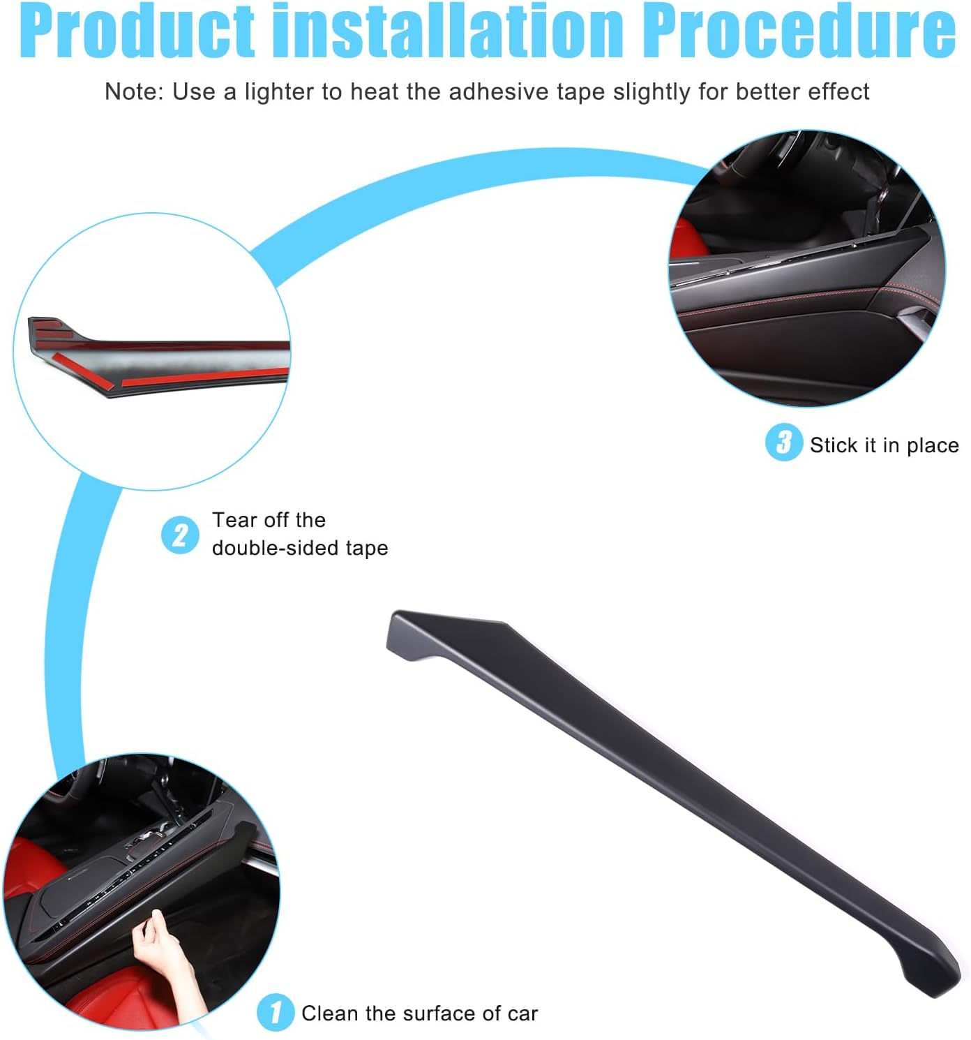 Product Name: Central Control Side Trim Strip Condition: 100% Brand new Applicable Models: for C8 Corvette Stingray Z06 Z51 2020-2024 Accessories Color: Red/ black Material: ABS Plastic Package: 1 Pcs/set for a car Installation method: Step1: Check the installation area first and then clean the place with alcohol to make sure no dust. Step2: Remove outer covering from tape to expose sticky side. Step3: Slightly heat the tape by hair dryer(hot gun) in cold weather.. Step4: Install the product in the right place, press on the edge at least 2 mins. Step5: Do not move the product or touch water in 48 hours after installation. All pictures are professionally colored, but due to the different ambient light and different display device settings, there may be some deviations between the pictures you see and the items themselves. Thank you for your support and understanding.