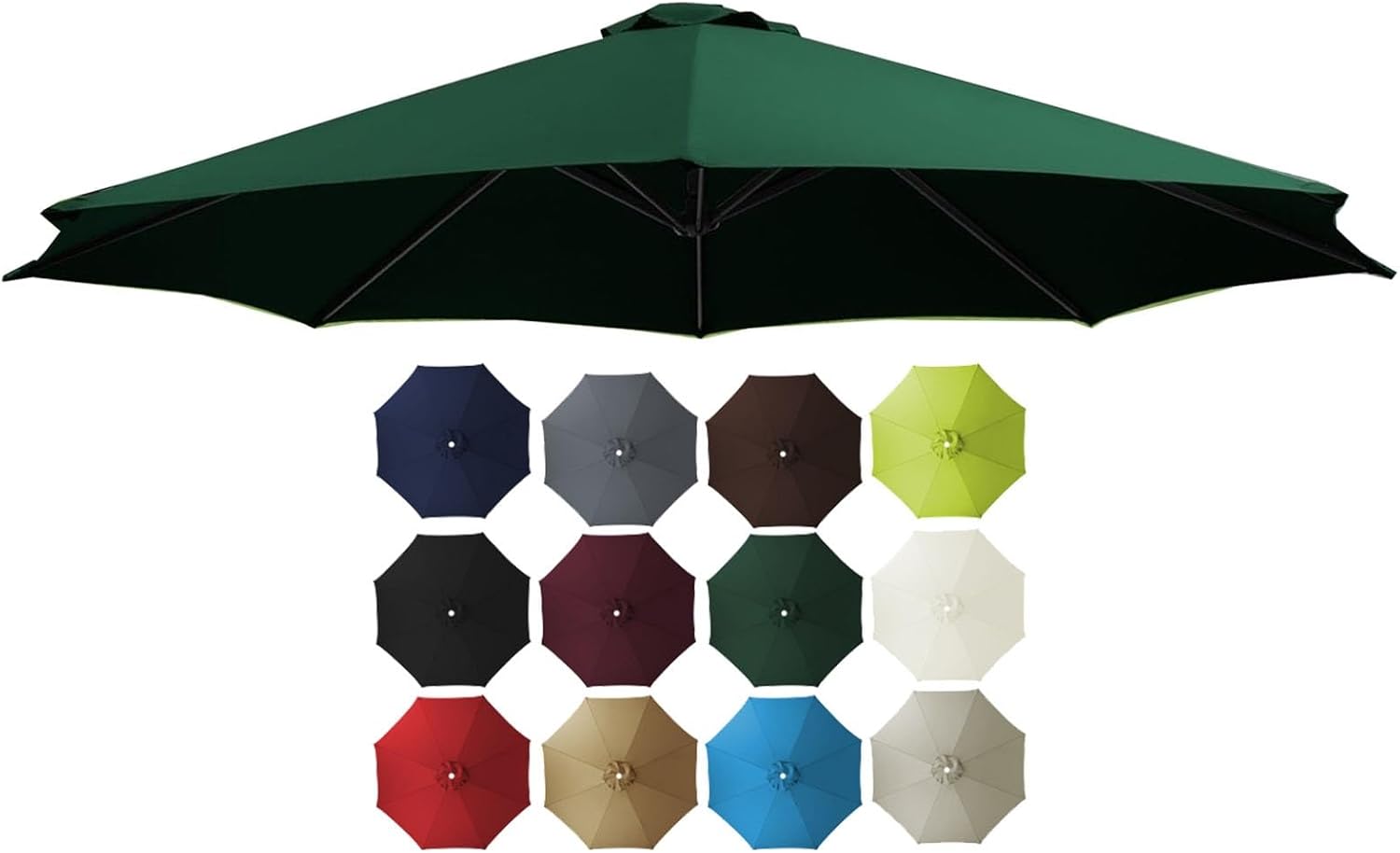 ---Replacement Fabric Garden Parasol Canopy Cover Umbrella Replacement Cloth Replacement Parasol Cloth Cantilever Parasol Umbrella Replacement Canopy Replacement Covers Market Patio Umbrella Canopy Cover Replacement Parasol Canopy for Patio Umbrella for Outdoor for Market Garden Deck Backyard Pool Waterproof Replacement Parasol Canopy Patio Umbrella Replacement Canopy 6 Arms 8 Arms Canopy Replacement Cover for Garden Market Beach Umbrella Replacement Umbrella Cover 6 Ribs 8 Ribs Outdoor Market Table Patio Umbrella Canopy Cover Replacement Replacement Covers Market Patio Umbrella Canopy CoverWhy choose Miecooe to replace the sunshade cover?Our replacement sunshade canopy provides a simple solution to inject new vitality into your garden umbrella. 7 sizes and 18 colors are suitable for all types of beach umbrellas, terrace umbrellas, or garden umbrellas. How to measure?Firstly, check if your sunshade has 6 ribs or 8 ribs, and then check if the shape of the sunshade matches the shape of the replacement canopy.The length of 1 of the ribs should also be measured (from the edge of the rib to the middle pillar). If the length of the umbrella ribs is 1.35 meters, the diameter of the sunshade will be 2.7 meters, and so on. Replace the umbrella cloth details.Fabric: PolyesterDimensions: 2m/6.5ft, 2.5m/8.2ft, 2.7m/8.8ft, 3.0m/9.8ft, 2.30 m/7.5ft..Number of arms: 6 ribs, 8 ribs.Colors:Black, red Light gray, Beige, White, Green, khaki, coffee, navy blue claret, Brown, Camel color, grey Champagne color, Lake blue, Yellow, Blue, Cream colored, Green, Orange.π¨π¨π¨ The packaging includes:1 replacement umbrella cover (without bracket)